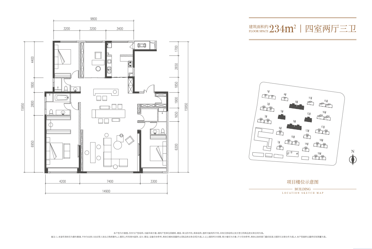 而楼王建面约234㎡的户型则是这种突破的“最终答案”。于板块,它达到物理空间的天花板级别。要知道在奥体正芯,建面约230㎡以上的产品存量比例仅占到4%。于项目,它是“大盘价值”的终极兑现。是这座百亩大盘所有资源沉淀的最终载体。