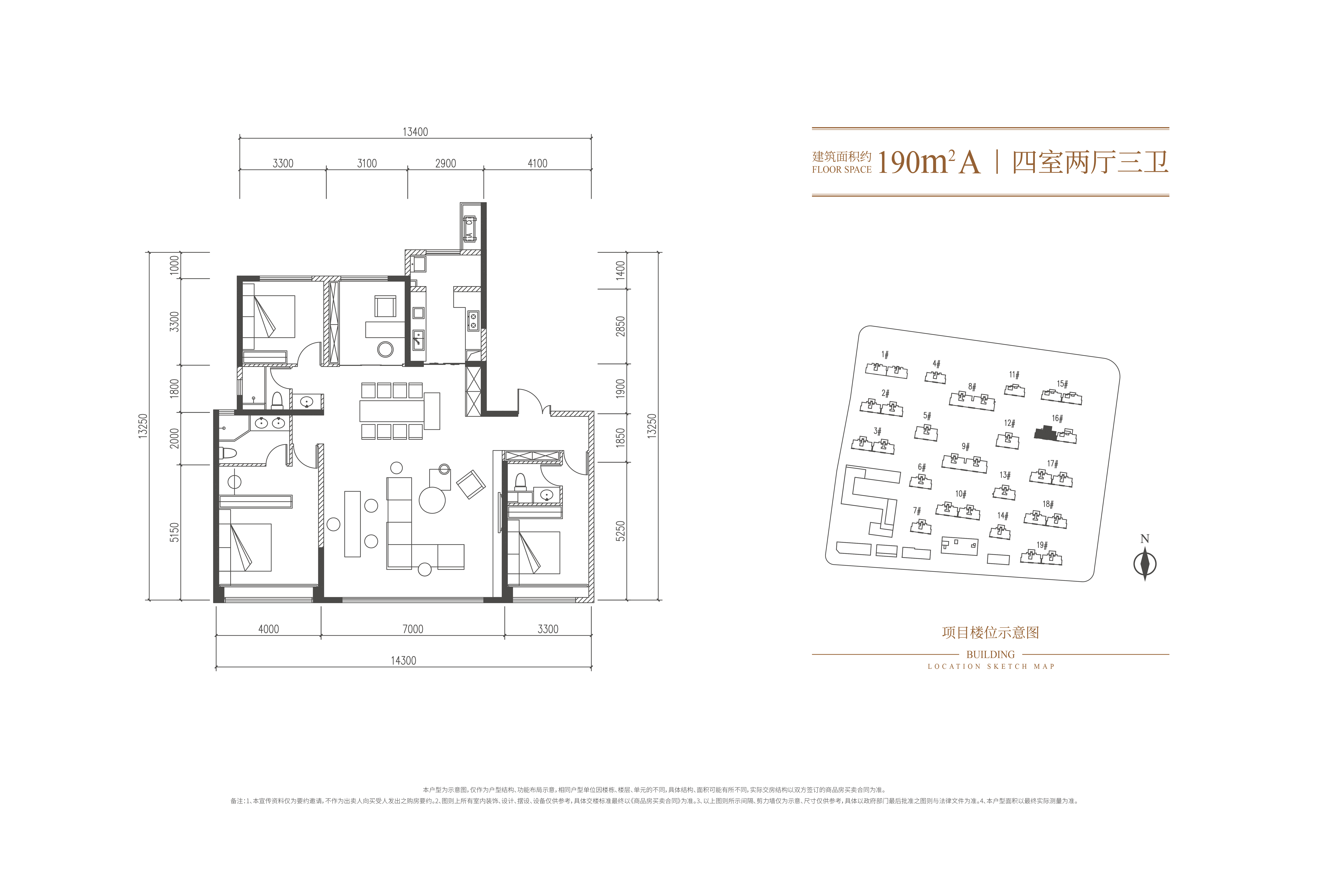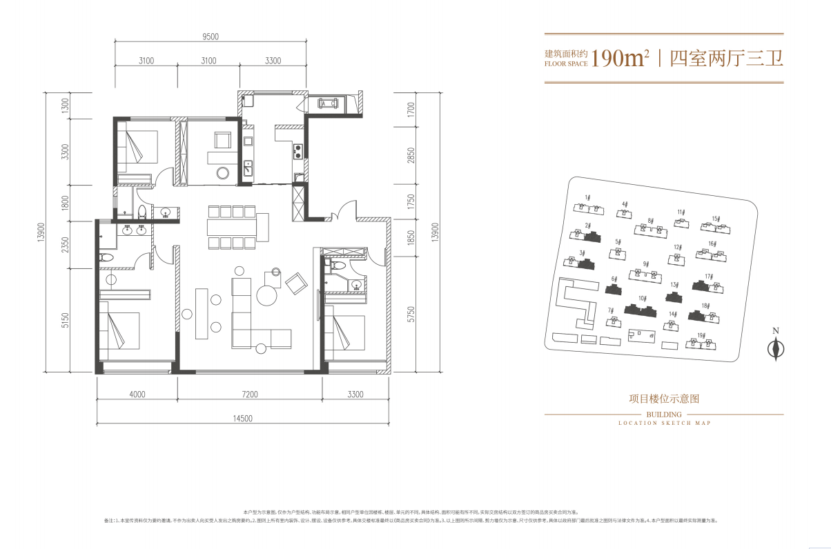 除过建面约234㎡的户型,还有一款建面约190㎡户型也同样出彩。其客餐厅面宽达约7米,同级少见。主卧体系功能分区清晰,动线独立,具备良好的场景互动性。